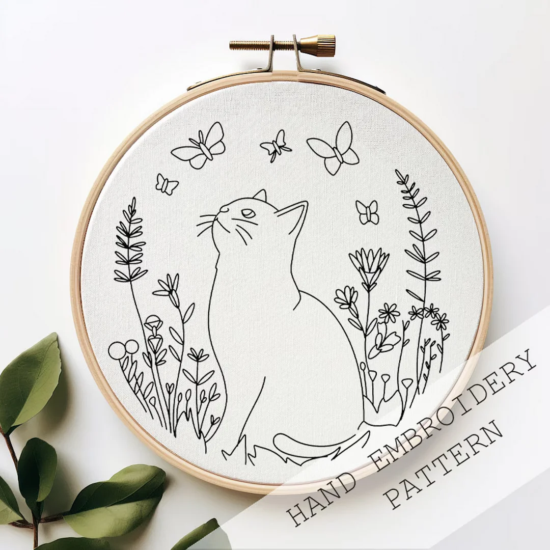 - Cat Butterflies Hand Embroidery Kit