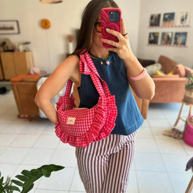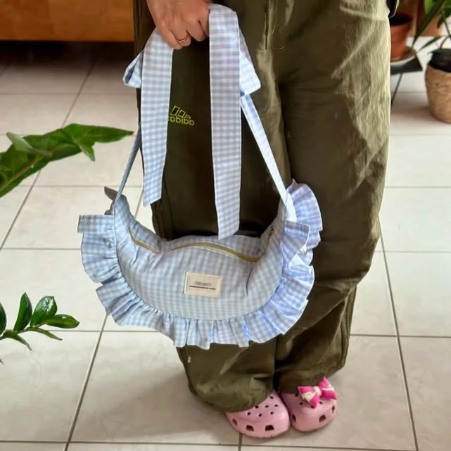 Ready to make jaws drop? 💥 Our secret weapon: optional RUFFLES! Sew them on (pattern included!) to transform your demure croissant into a full-on diva. One minute it’s minimalist chic; the next, it’s flirty, fabulous, and demanding applause 👏. Warning: Side effects include excessive twirling and strangers asking, “WHERE did you get that bag?!” 😉