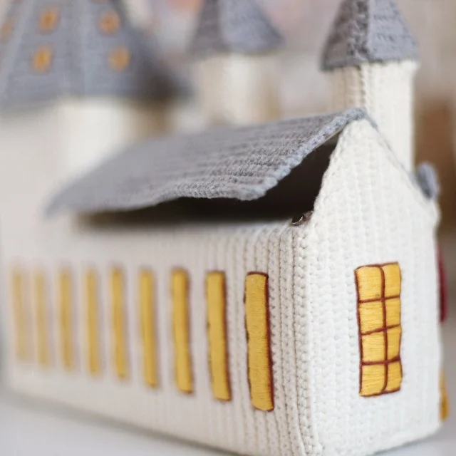 Crafted with love and attention to detail, this crochet pattern is written in English using American terminology. It features a captivating wizard castle, measuring approximately 24.5x7.5x27 cm (9.65x2.95x10.63 inches), that will transport you to a world of fantasy and wonder. The castle boasts 12 doors, each ready to reveal a special gift or surprise, and secret rooms where you can hide additional treats and treasures.