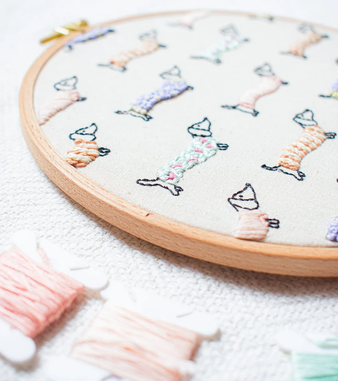 Perfect for beginners, this kit comes with everything you need to create your own dachshund puppy. It's super simple to use, so whether you're experienced or brand new to embroidery, you'll have a blast! The kit includes:
