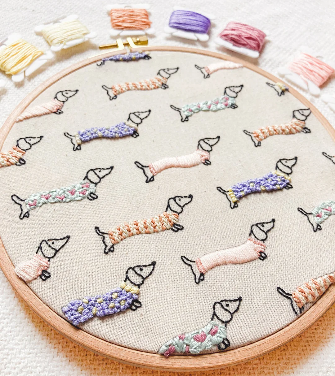 Discover the joy of creating your very own dachshund puppy! Whether it's playful, elegant, or just plain lazy, you can easily stitch up these cute pups in no time 🐕✨. The Dachshund Puppy Embroidery Kit is designed for anyone who loves DIY and adorable pets. Simple to use and full of charm, each little puppy will bring warmth and fun to your life as your new, handcrafted companion.