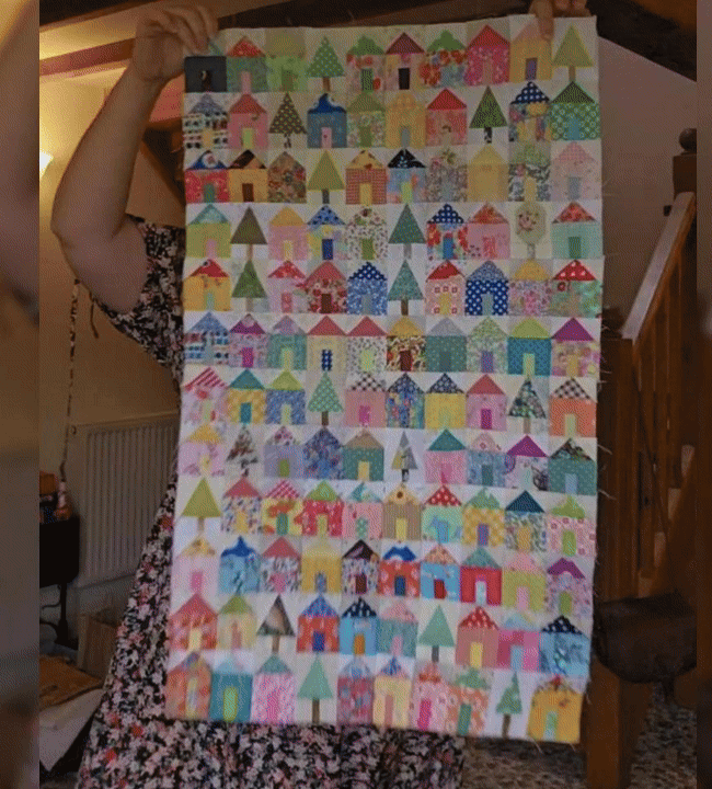 Why stop at one house when you can quilt a whole village? 🌆 Use the template to create quilts, pouches, pillow covers, or even wall art—your scraps, your rules! Mix and match patterns to make each house unique. Suddenly, that "useless" scrap of floral fabric? It’s now a charming rooftop. Boom. Creative genius unlocked.