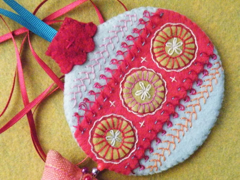 - Felt Christmas Baubles Embroidery Pattern Template - With Instructions