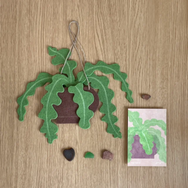 We broke down the plant into small felt pieces and carefully illustrated them with colored pencils to give it a cozy, lively personality. It’s not just a plant—it’s a tiny piece of art you bring to life 🖍️✨