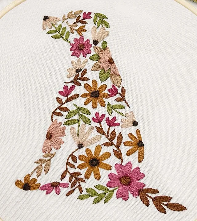 It's an embroidery kit where various small floral patterns come together to form an adorable puppy. You'll create a puppy made of flowers, adding endless joy and beauty to your life.