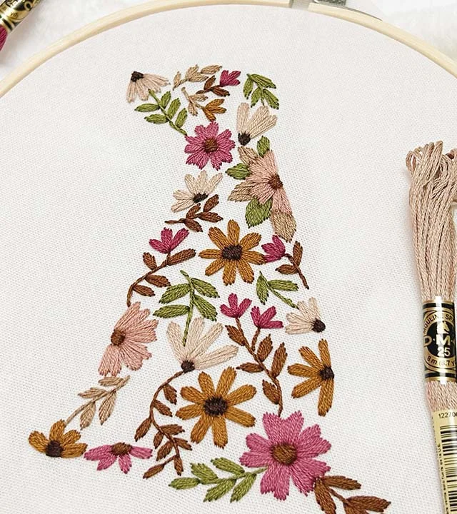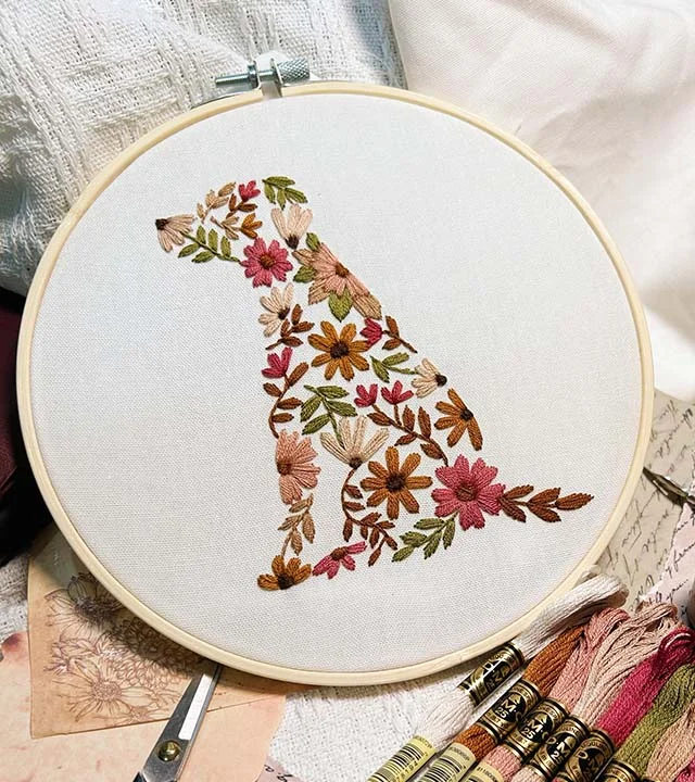 - Floral Puppy Embroidery Kit