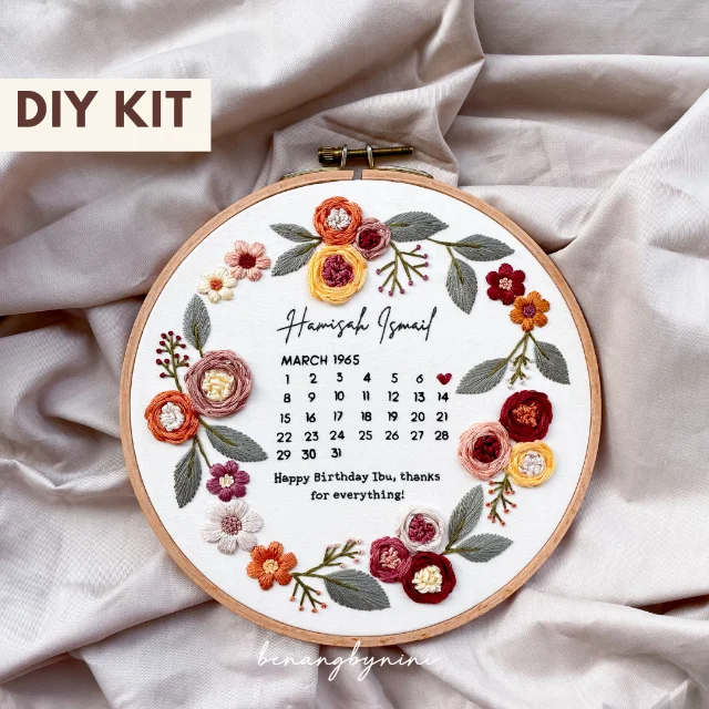This hand embroidery kit is perfect for advanced beginners. Now you can explore your creative side & stitch your own calendar embroidery!