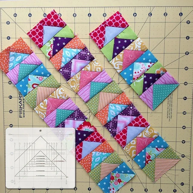 A great tool for creating flying geese. It combines all the sizes of geese into one. Easy to use ruler....From a 1"x 2" finished geese, to a 5" x 10" finished geese.
