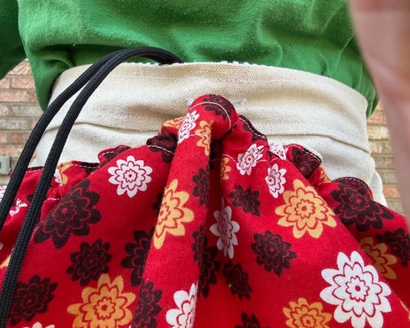 But wait, there's more! 🎩 Our apron isn't just a one-trick pony. With its innovative design, you can wear it straight for a classic look or gather it into a "basket" for those times when your hands are brimming with goodies. And the magic doesn't stop there! 🪄 Thanks to the inserted cording, you can effortlessly gather the "basket" and secure it with a stylish squeeze toggle. No more fumbling around—just cinch and go! 🏃♀💨