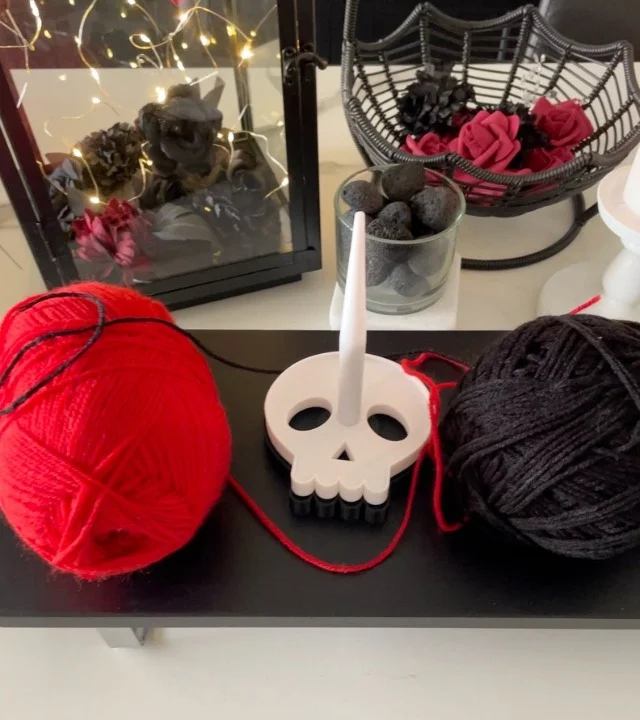 Introducing our unique Spooky Skull Yarn Spinner. This is the perfect solution for knitting and crochet enthusiasts alike!