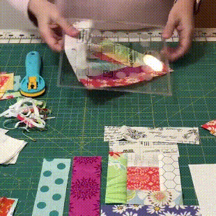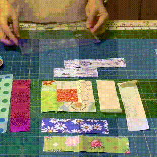 After adding each round of "logs", place the appropriate centering square on the ruler over the 2" finished center and trim.