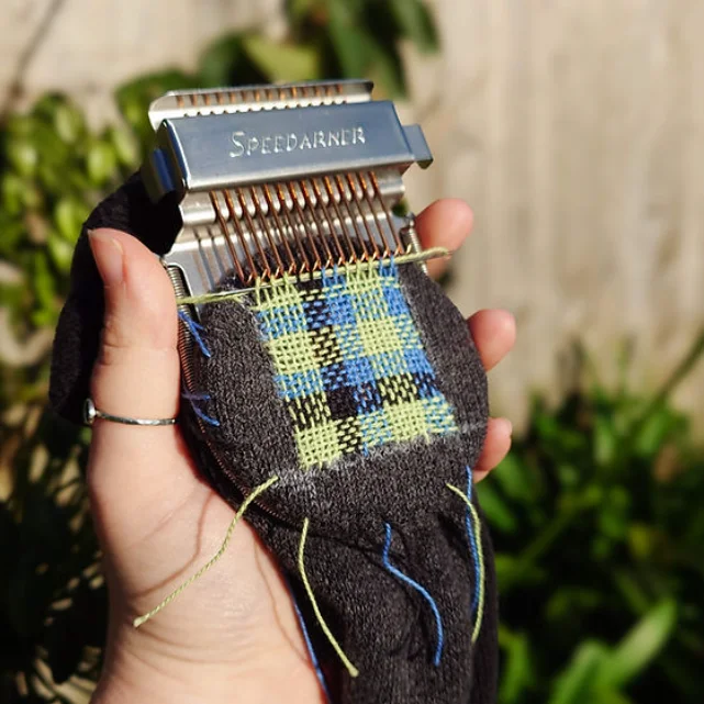Inspired by the iconic design of the original 1940’s Speedweve machine, this tiny loom creates neat patches over small holes, stubborn stains, or worn-out spots to revive and transform much-loved garments.